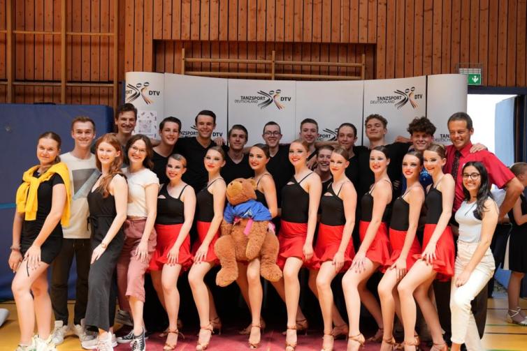 Durch den Sieg beim Landesfinale Bayern am 19.04. in Lauf hatte sich die Lateinformation des CJT-Gymnasiums für den Bundeswettbewerb der Schulformationen qualifiziert. Am 17.06. begaben sich die 8 Paare aus der 10.-12.Klasse dann nach Maintal, um auch dort mit ihrer „Burlesque“-Choreographie anzutreten. Bereits in der Vorrunde gelang ein überzeugender Durchgang, der im Finale noch etwas gesteigert werden konnte. Die offene Wertung nach dem Finale brachte die Sicherheit: mit der Traumwertung „1111111“ konnten die 8 jungen Paare des CJT den Bundeswettbewerb der Schulformationen klar für sich entscheiden und sind nun deutscher Meister.