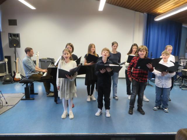 Neben instrumentalen Leckerbissen wurde den Zuhörern auch Gesangliches geboten, von der kleinen bis zur großen Besetzung in Form des Unterstufenchors unter Leitung von Matthias Hohmann.