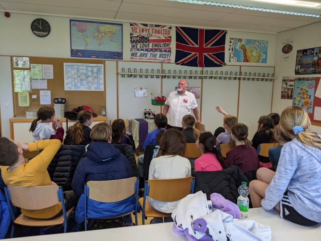 Wie jedes Jahr besuchte auch heuer wieder Jim Wingate aus Großbritannien das CJT, um den 5-Klässlerinnen und -klässern auf spielerische Art und Weise die englische Sprache einfach und eindrucksvoll näher zu bringen. Dem Geschichtenerzähler gelingt es dabei immer wieder, den Schülerinnen und Schülern Berührungsängste mit der eigentlich noch fremden Sprache zu nehmen, indem er sie in sein Spiel einbettet und zum Mitmachen animiert.
