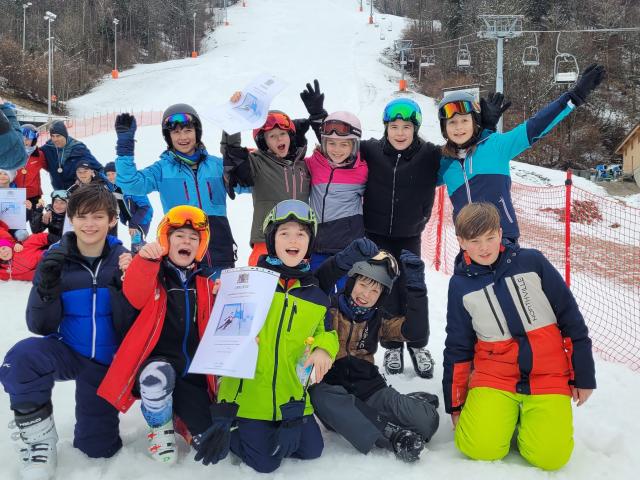 Zusammen mit den Mannschaften aus Oberfranken von zwei Coburger Gymnasien machten sich die Laufer auf den Weg in Berge. Der Schnee war erst kurz vor Garmisch zu sehen. Für einen schönen halben Skitag im Skigebiet Garmisch-Classic mit seinen bekannten Weltcuppisten reichte der Schnee aber gut. Über Nacht kamen dann etwa 20cm nasser Neuschnee dazu, so dass vor dem Rennen erst alle 100 Teilnehmer gemeinsam die Rennpiste von dem schweren Schnee befreien mussten. Gemeinsam rutschten sie mit ihren Skiern den Schnee aus der Rennpiste heraus, damit das Rennen überhaupt stattfinden konnte. Die Rennatmosphäre, die die Schüler am Hang spürten, war eindrucksvoll. Die Mannschaften aus den Bergen waren mit einem riesigen Trainer- und Betreuerstab angereist. Bei einem Blick auf die hautengen Rennanzüge und die bestens präparierten Trainings- und Rennski der Rennteams fühlte man sich fast schon ein wenig wie im alpinen Ski-Weltcup. Nach der gemeinsamen Besichtigung der Strecke war die Anspannung der Laufer und aller anderen gut zu spüren. Der Hang am Gudiberg, der im oberen Bereich eine beachtliche Steigung von 58% hat und Austragungsort der WM 2011 war, zeigte sich überaus anspruchsvoll. Harte eisige Stellen nahe bei den Stangen und nasser bremsender Neuschnee knapp außerhalb der Idealspur stellten die Teilnehmer vor große Herausforderungen. Bald wurde auch deutlich, dass die Piste im Verlauf doch sehr litt. Die Bedingungen wurden in der zweiten Hälfte des Starterfelds, als die Jungen dran waren, immer schlechter, so dass es zahlreiche Stürze gab. Auch bei drei der Laufer Schülern lösten starke Schläge in der Piste die Bindung aus und sie konnten ihren Lauf nicht zu Ende bringen. Zum Glück verletzte sich keiner von ihnen. Der geplante zweite Durchgang wurde aus Vorsichtsgründen abgesagt und es wurde nur ein Lauf gewertet. Die kurzzeitige Enttäuschung wich aber dann schnell dem Stolz bei der Siegerehrung. Beide Mannschaften freuten sich darüber, bei diesem eindrucksvollen Ereignis dabei gewesen, sich der Herausforderung des WM-Hangs gestellt und den 10. Platz unter den zehn besten bayerischen Mannschaften belegt zu haben.
