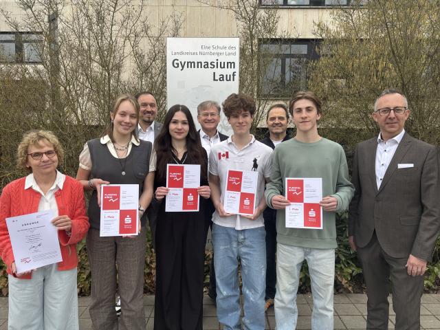Das Bundessieger-Team „EPUEW“ vom Christoph-Jacob-Treu Gymnasium in Lauf wird zur nationalen Siegergala am 16. Mai 2025 mit dreitägigem Rahmenprogramm nach Berlin eingeladen. Zudem lösten sie ein Ticket für die große europäische Siegergala, die in diesem Jahr im Frühjahr in Brüssel stattfindet. Darüber hinaus bekommen sie jeweils einen Preis in Form einer finanziellen Unterstützung für ein Schulvorhaben vom Deutschen Sparkassen- und Giroverband.
